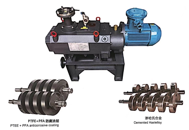 螺桿泵工作腔為間隙密封,無潤滑油,是環保型真空設備,因此干式螺桿泵能抽除含有大量水蒸汽及少量粉塵的氣體場合,極限真空高,消耗功率低,具有節能、降耗免維修等優點,特別在半導體、電子工業中要求無油潔凈的場合以及化工制藥中對溶劑的回收工藝等具有不可比擬的優越性。